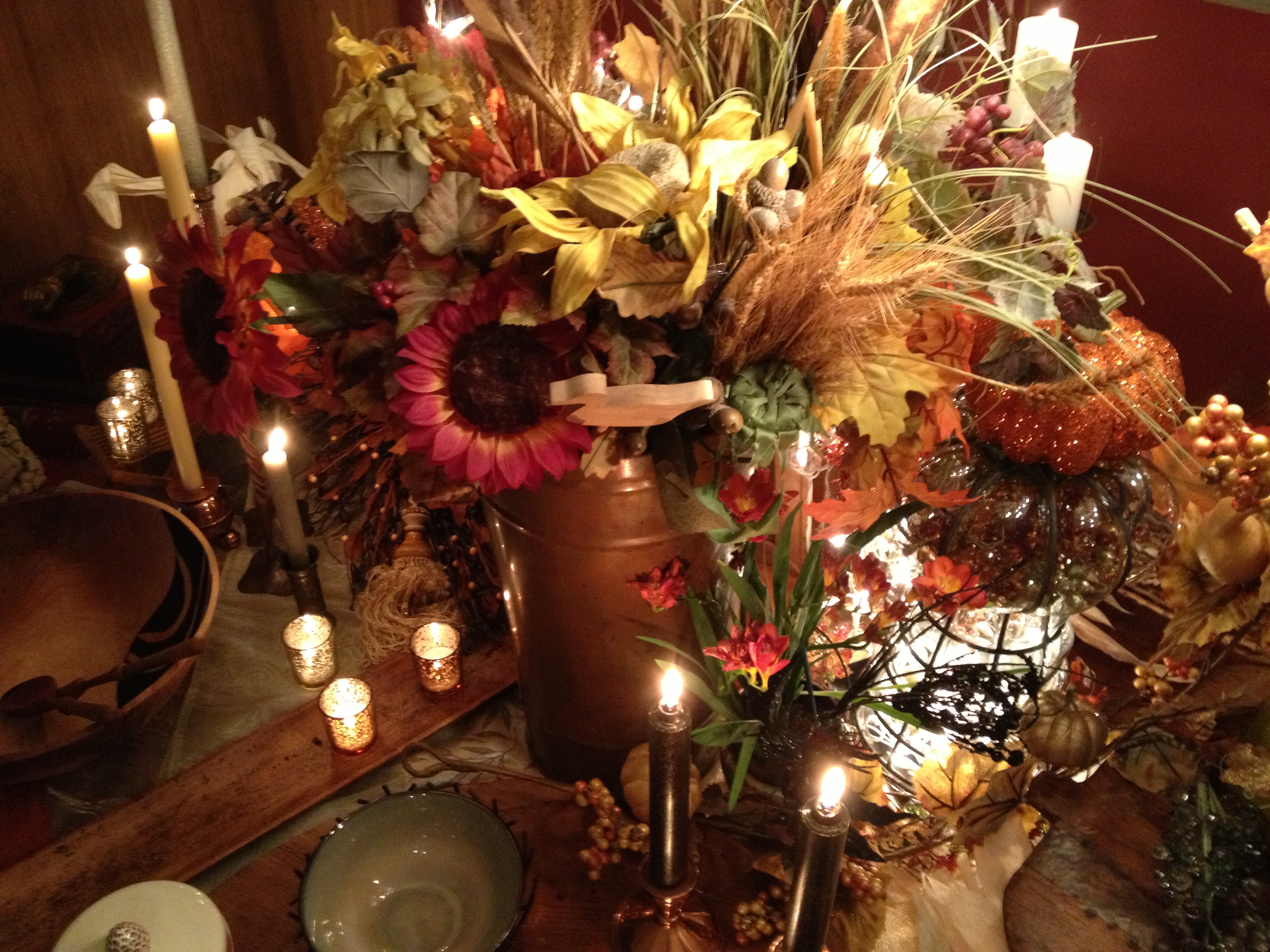Thanksgiving .   .   . fallen leaves that crunch under foot, shorter daylight, nippier nights, home gatherings, lit fireplaces, and .  .  . by all means… candles… lots of candles… tall, short, fat, skinny, floating, and fancy .   .  .