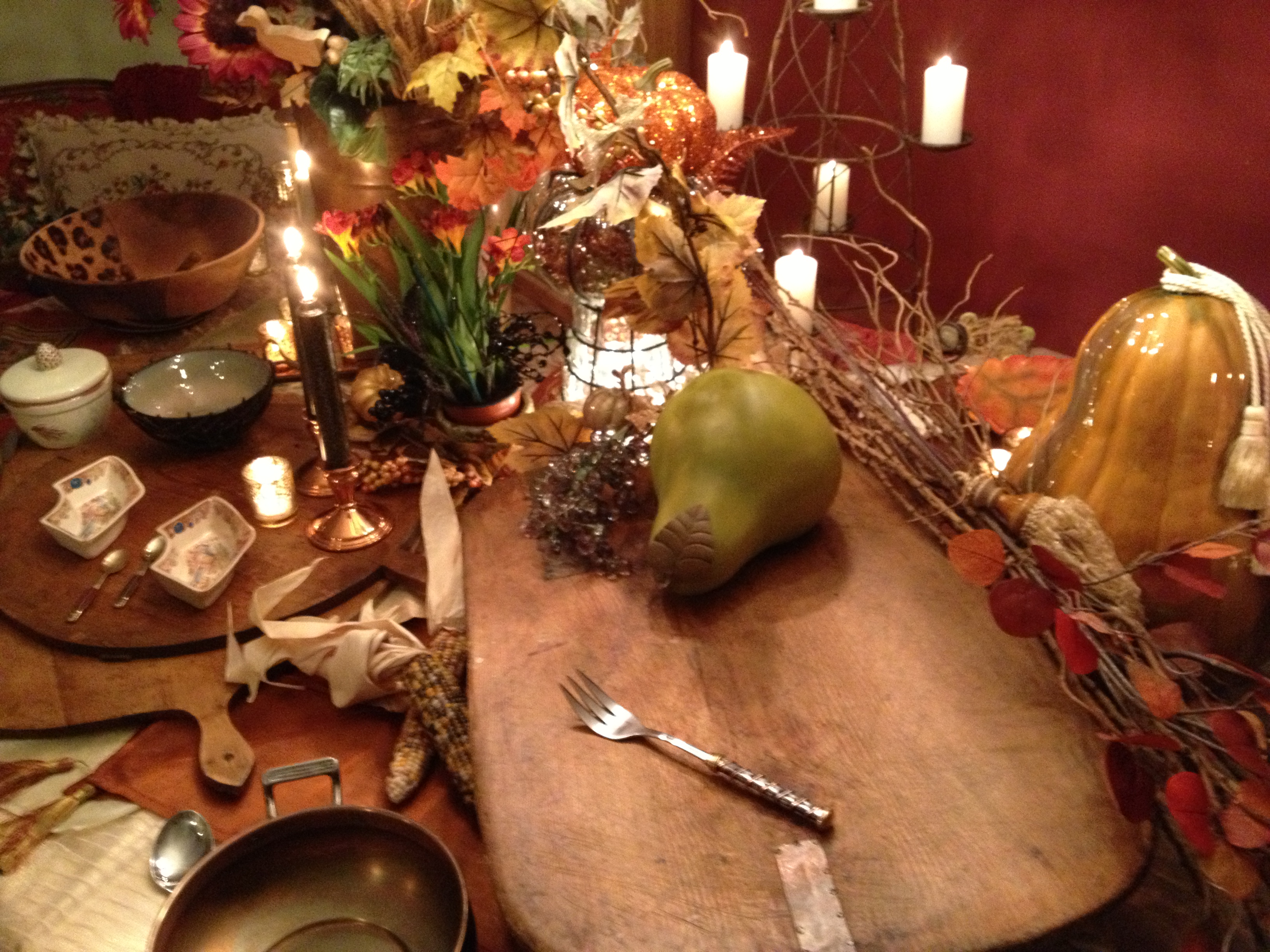 When thinking fall gatherings . . . think rich harvest colors, well worn copper, mixed with rich seasoned wood trays and bowls.