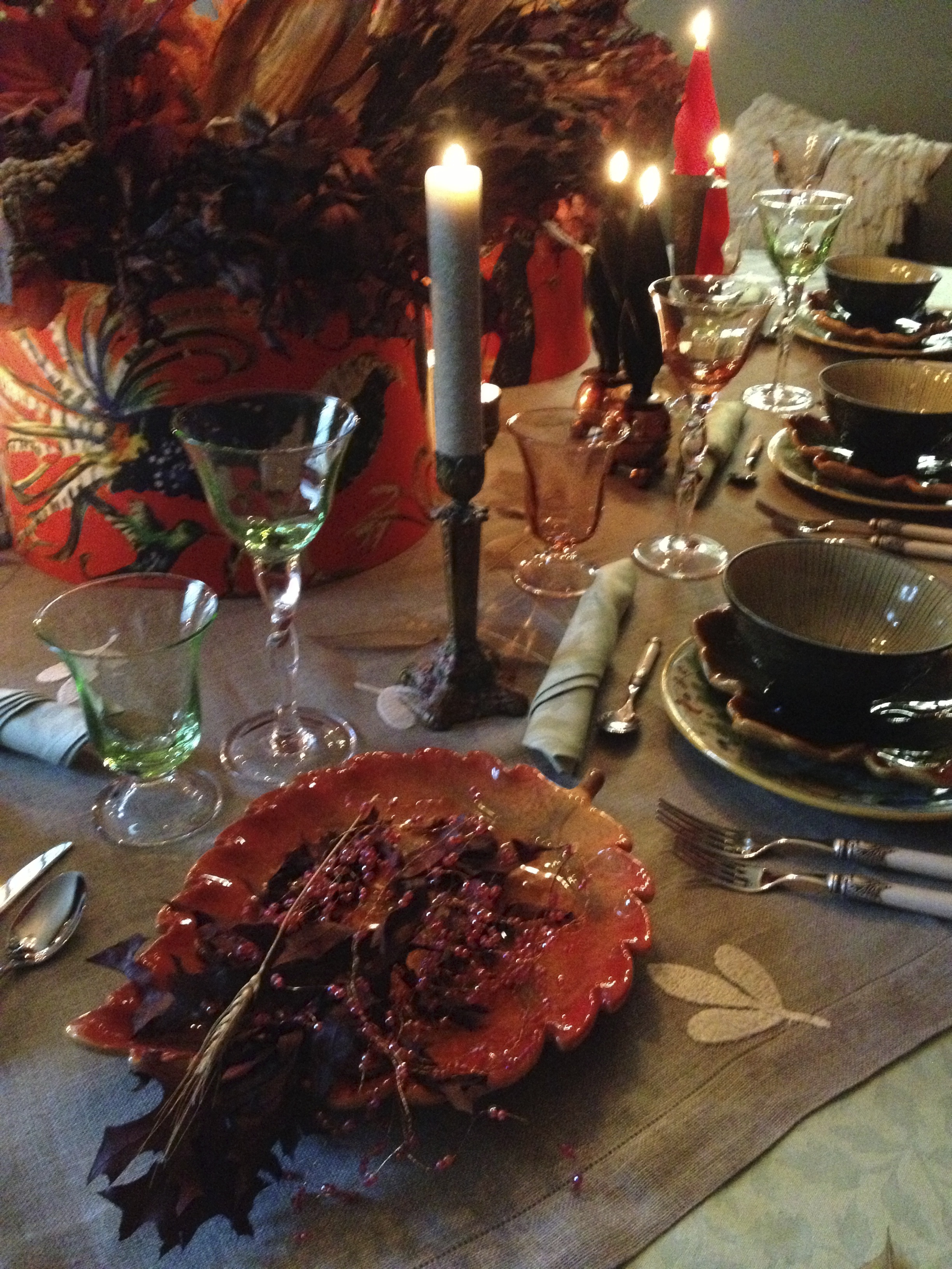 For drama and romance … there are candles .   .   . lots and lots and lots of wonderful candles………….Votive cups, candle holders for tapers (mix sizes and shapes ), and pillars. The key here is to place them strategically so as NOT to block sight lines between guests, while allowing  candle light to flatter your guests.   .   .