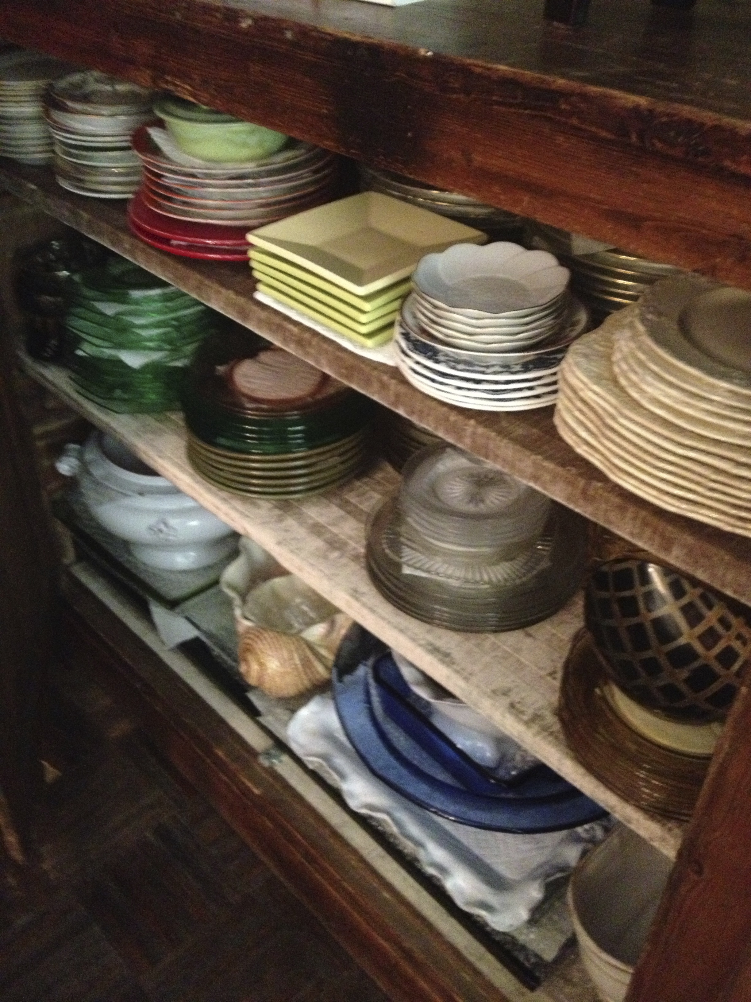 So I alone forged ahead, mindful of my goal, and stacks, and stacks of fragile, and not so fragile dishes that were not . . . I repeat, were not going to organize, categorize, or hop up onto the shelf by themselves. Once my panic attack began to subside, i.e. pulse slowly returning back to normal, I did what I preach . . . BREATH! . . . Actually I did a whole lot of deep, deep breaths, and then miracles of miracles . . . I had morphed into the dish organization zone. I mean hip high, deep, dish toting, long forgotten dish discovery . . . Whoa !!!