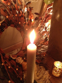 Um . . . it’s o k I really wasn’t asking on a personal level. Phew!!! Let’s move on. Time to dig out the heavier comforters, stock up on firewood, and of course candles,candles, and more candles. As seen below, one candle well placed, mixed with a wreath of leaves, feathers, and dried berries says time to enjoy! The key to getting this beautiful glowing flame is to start with the wick between 1/4 – 3/8 of an inch before lighting every time. The next tip to getting the best and most out of your candles is to keep flames out of a draft.