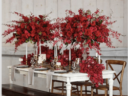 The table shown below is NOT my tablescape, but merely an over-the-top example of what I view as a floral centerpiece-staging event, not dinner. Sooo your conversation is limited to the person on your right and left only, but definitely not much from the no-sight-zone, over or around the elephant in the room. Ouch . . . my stiff neck!!!