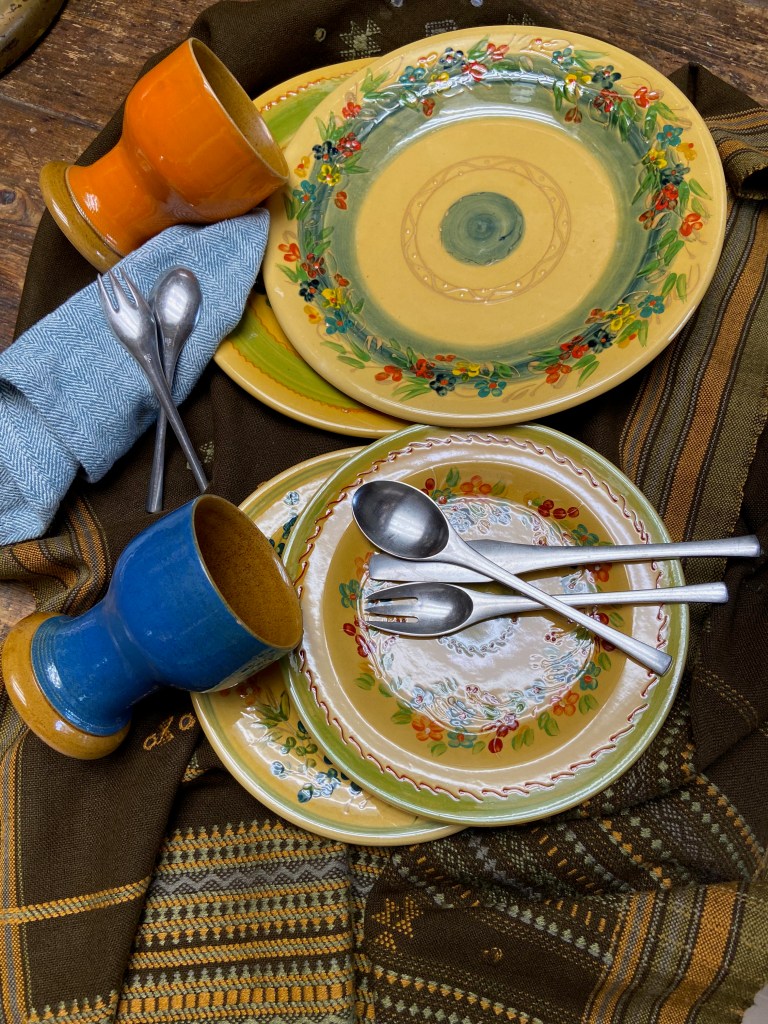 Dreaming about those lazy days meandering through Provence or perhaps wandering the the narrow dusty streets of Marrakesh? It is amazing what a few hand painted plates from Provence nestled among a festive mirrored accented throw from Morocco can do to ones psyche. Oh yes please! But as reality sets in I must rely on memories. . . for the moment. Of course I am giggling. Why not? My land-locked days are merely temporary. Until traveling allows me to safely explore those off-the-beaten-path surprises once again, I plan on my delving deep into my chocked full of memory cupboards.