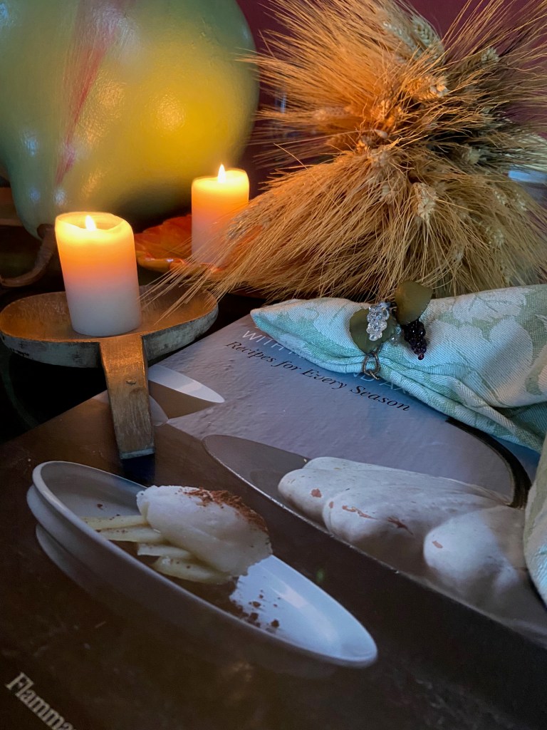 ,Ooooeee. Do you feel it? The chill. The chill that sets in as autumn takes center stage. Yes yes I know. . . we still have warmish days ahead . . . but evenings . . . mmm . . . not so much. Sooooooo . . . What’s a person to do? Well, since we can’t regulate the weather as we do our thermostats . . . I say . . . it’s time to adjust what we can. Easy-queasy don’t stress yourselves! What I am proposing is sooo attainable. Yup it’s back to layer, layer, layer!!! The table seen in the photo below is a perfect example of layering. Think . . . tummy satisfying hot meals, cozying up to the fireplace, and ambience, ambience, ambience! Wait! Almost done. Now warmup your table with earthenware, bunches of dried wheat and flickering candles.